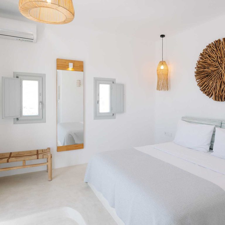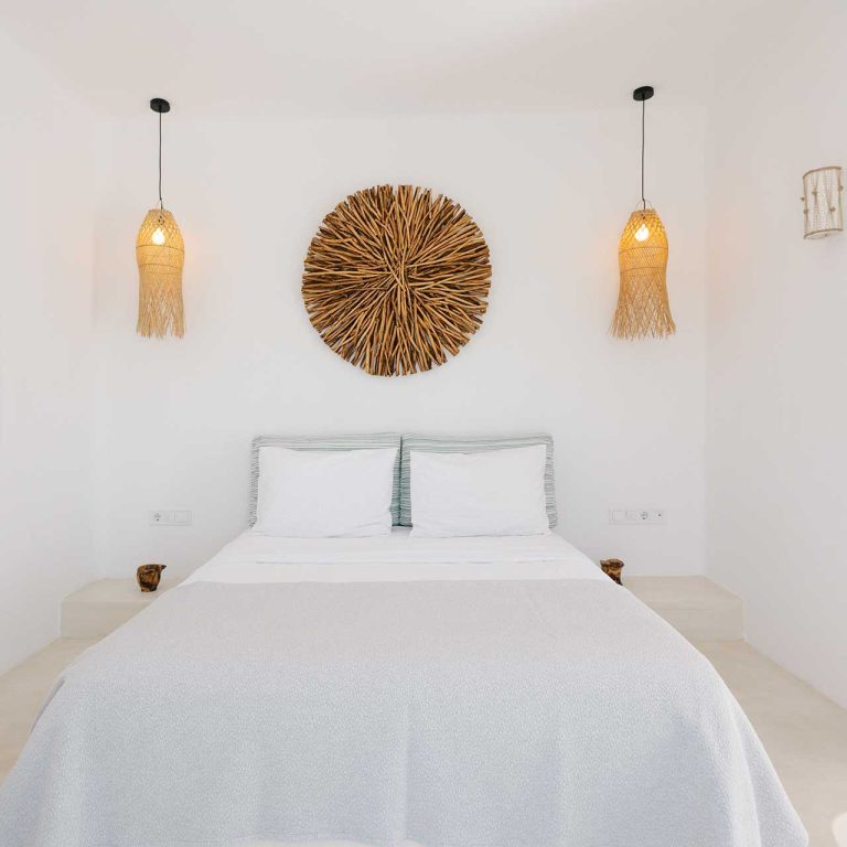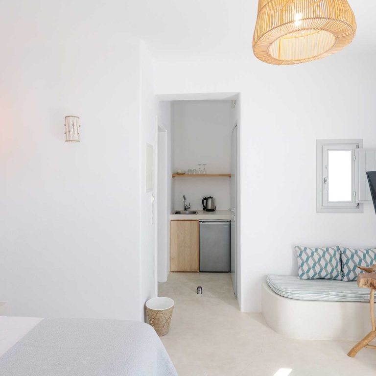25m2 suite (with bedroom and living room). Built in furniture, bathroom with shower, private veranda with a view of the traditional settlement Chora of Ios and the sea. Private outdoor built hot tub with a sunbathing spot and sitting.